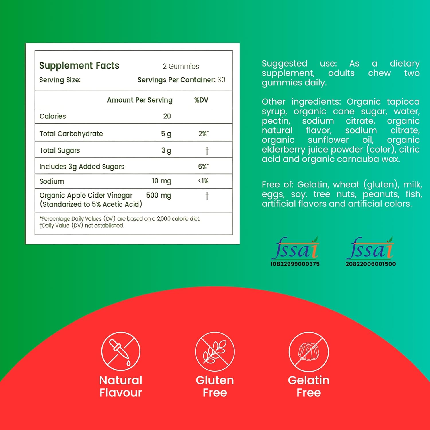 Gut Health: Each gummy includes the “mother” of vinegar, rich in gut-friendly probiotics, which have been traditionally used to support digestive health and improve nutrient absorption for overall wellness.