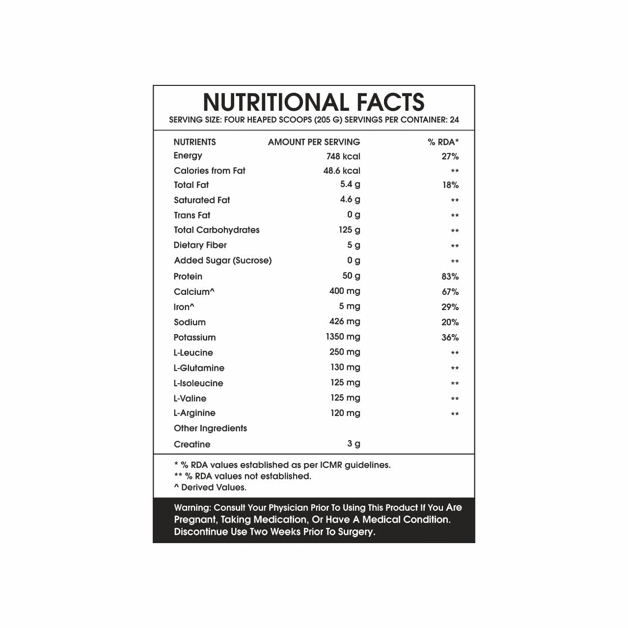ENERGY ABUNDANCE- Receive a robust and sustained release of calories from simple and complex carbs to fuel your muscles for long hours offering 748 kcal per serving with milk