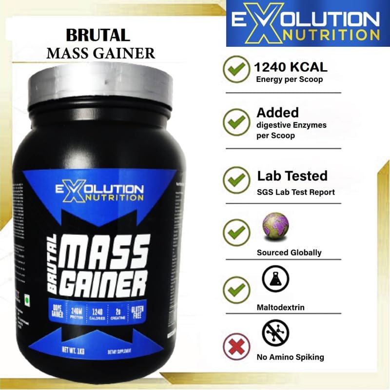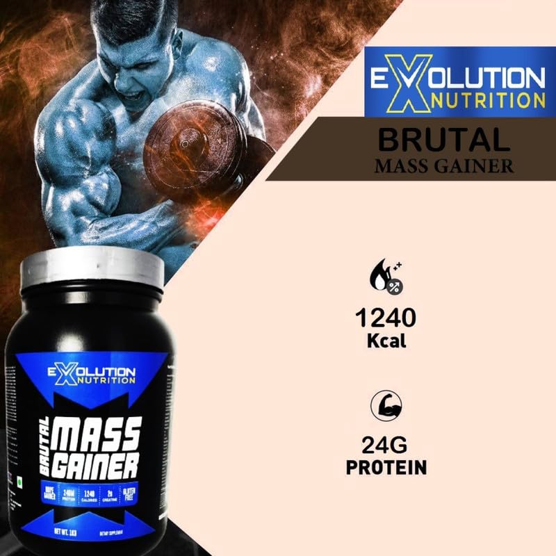 HIGH-CALORIE FORMULA :- Brutal Mass & Weight Gainer by EVOLUTION NUTRITION delivers an impressive 1240 calories per serving, providing a robust foundation for individuals aiming to achieve substantial muscle and weight gains.