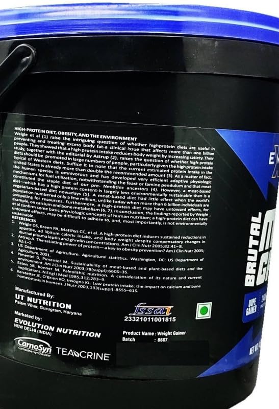 - Available in the delectable Blue Berry flavor, each 1 KG/2.2LBS container provides a generous supply to fuel your fitness journey. Whether you are a bodybuilder, athlete, or fitness enthusiast, EVOLUTION NUTRITION BRUTAL Mass & Weight Gainer offers a comprehensive solution to help you achieve your bulking goals effectively and deliciously. Elevate your training experience with this superior blend, combining science-backed ingredients for optimum results.