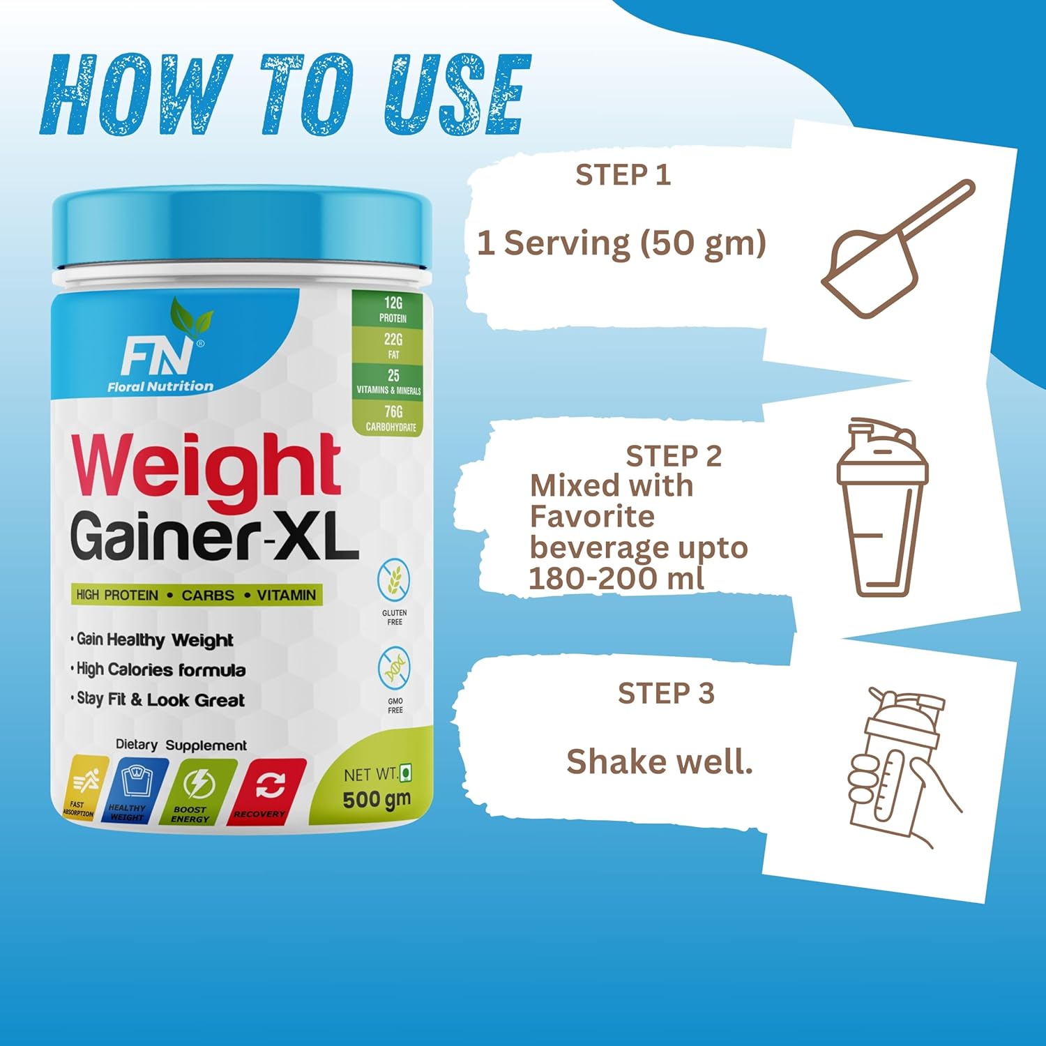 High protein : FN Weight Gainer protein supplement provides 10 gm high protein and in every 100 grams serving with milk to help build lean muscle mass. This enables your body to gain and maintain a healthy weight.