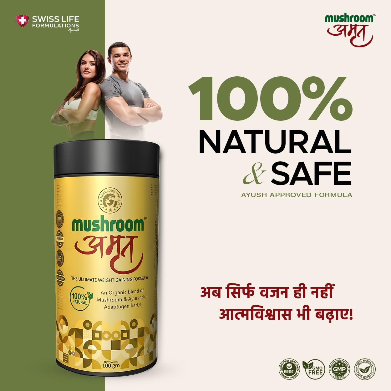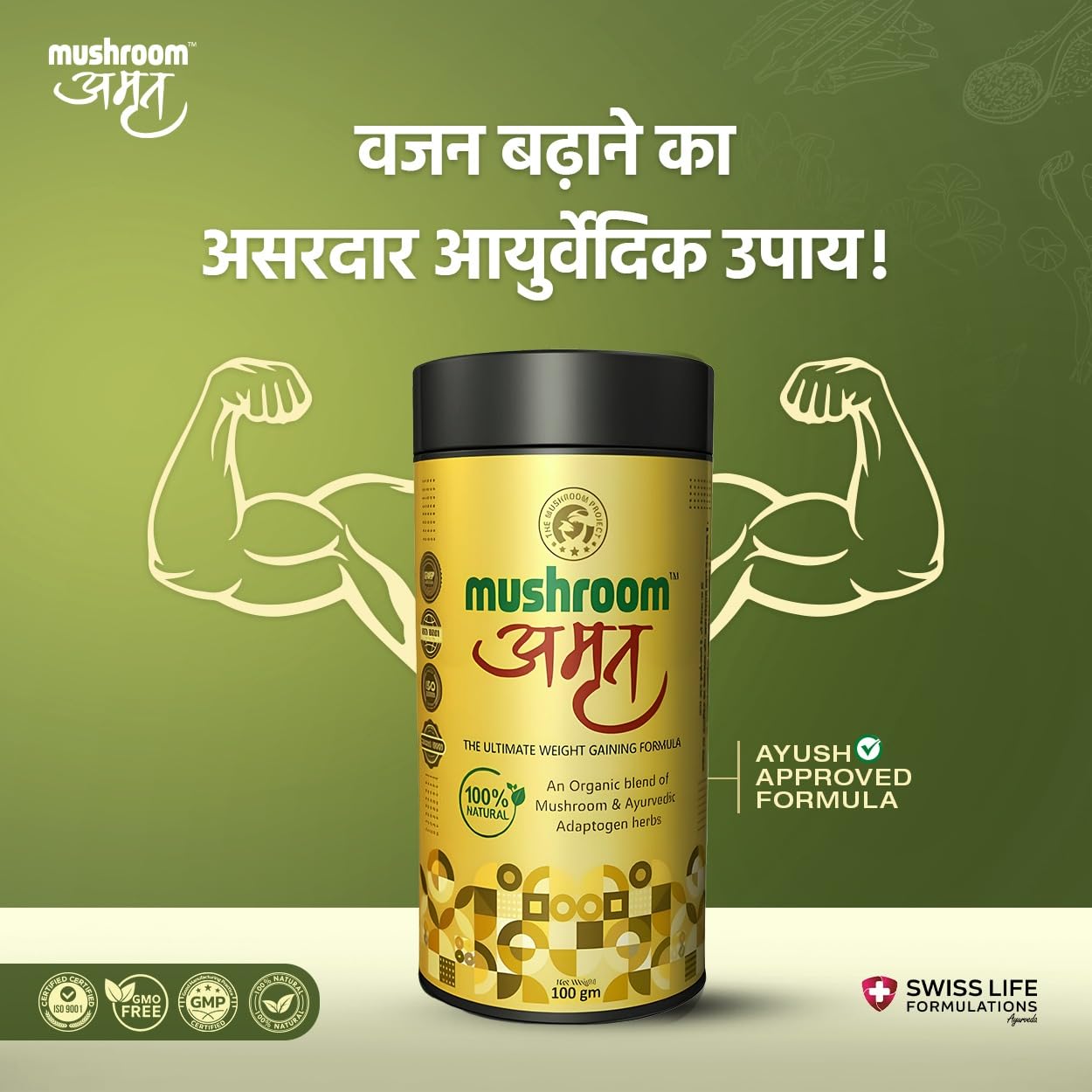 Mushroom Amrut Powder 100 Gram Ayurvedic Weight Gainer for Men, Women, and Adults – Increase Natural Stamina, Appetite, and Wellness Booster