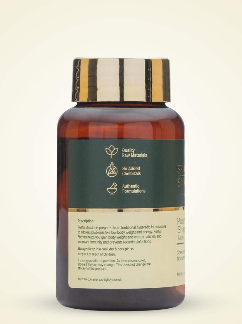 Although being underweight is a pervasive issue, it is uncommon to find natural and efficient weight-gaining methods. For quick results, a lot of individuals rely on body mass gainers and chemical-based supplements, but they are really bad for your internal organs and overall health. Pushti Shastra, an all-natural capsule derived from Ayurvedic herbs, boosts immunity and helps avoid recurrent infections. This Ayurvedic medication works on numerous body systems to heal the body and produce long-lasting effects. Long-term use of Pushti Shastra in diet and lifestyle will produce effective and positive outcomes.